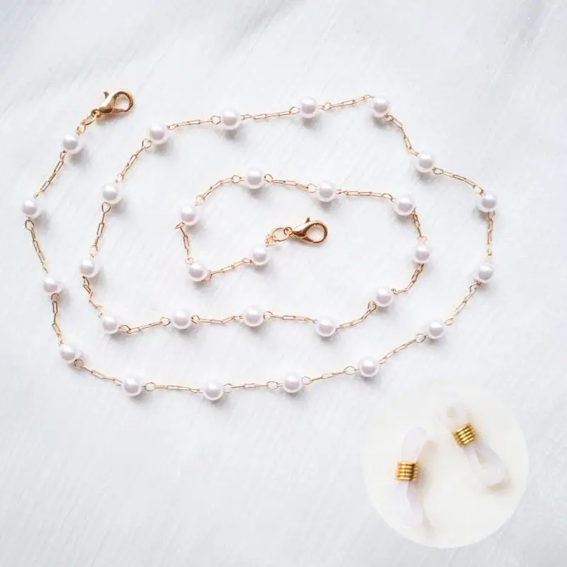 Цепочка для очков женская с жемчужными бусинами, модный нескользящий шнурок с кулоном из кристаллов, нескользящая цепь-держатель для очков с защитой от падения