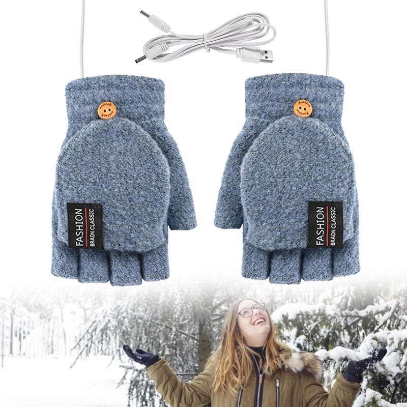 Перчатки с электрическим подогревом и USB, двусторонние перчатки с подогревом, варежки, перезаряжаемые водонепроницаемые с регулируемой температурой, для велоспорта, лыжного спорта