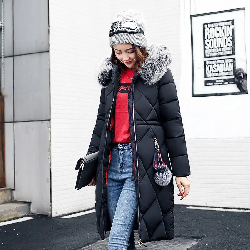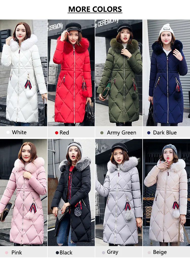 Зимняя куртка, женские парки 2021, теплая однотонная парка с мехом, облегающие длинные зимние пальто, хлопковая куртка, Женское зимнее пальто большого размера