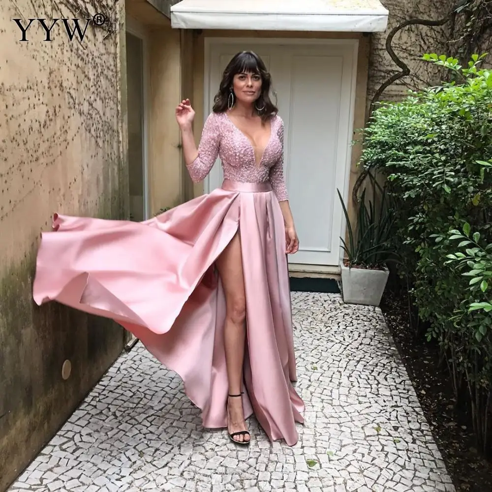 Длинное вечернее платье с V-образным вырезом, размеры до 5xl