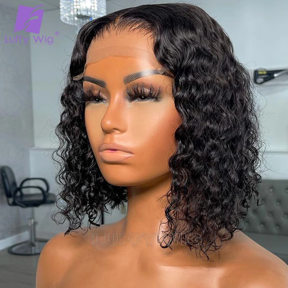 Короткие вьющиеся Hd прозрачные кружевные передние парики из человеческих волос, предварительно выщипанные бразильские неповрежденные волосы 13x 6, женские парики LUFFY