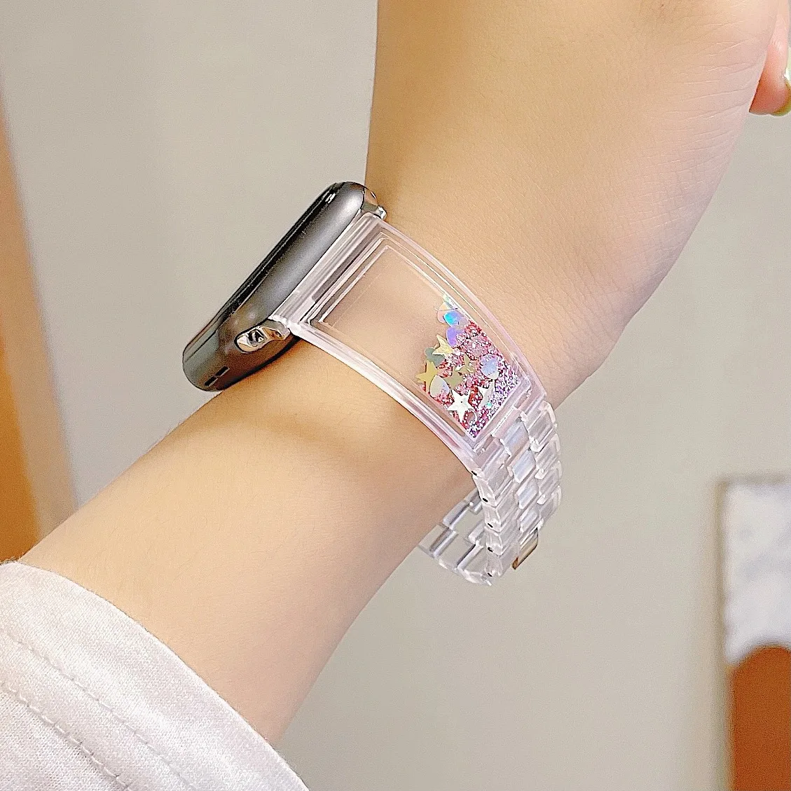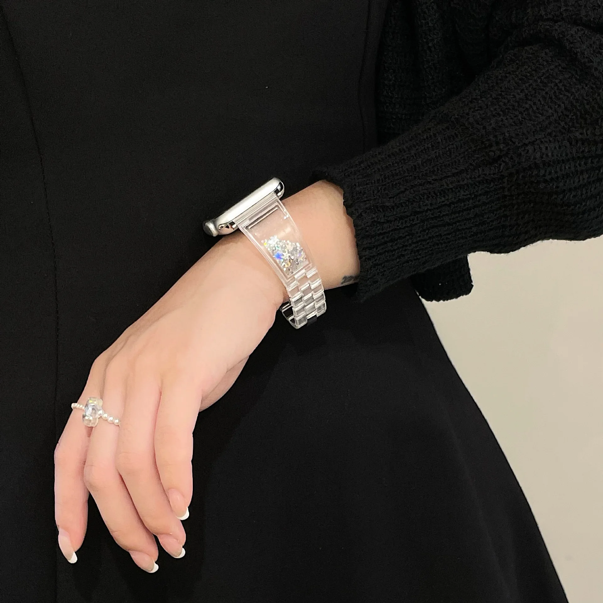 Ремешок прозрачный для Apple Watch Band 44 мм 42 мм iwatch 3 2 38 мм 40 мм, Женский звеньевой браслет из прозрачной ткани для серии 6 SE 5 4 7
