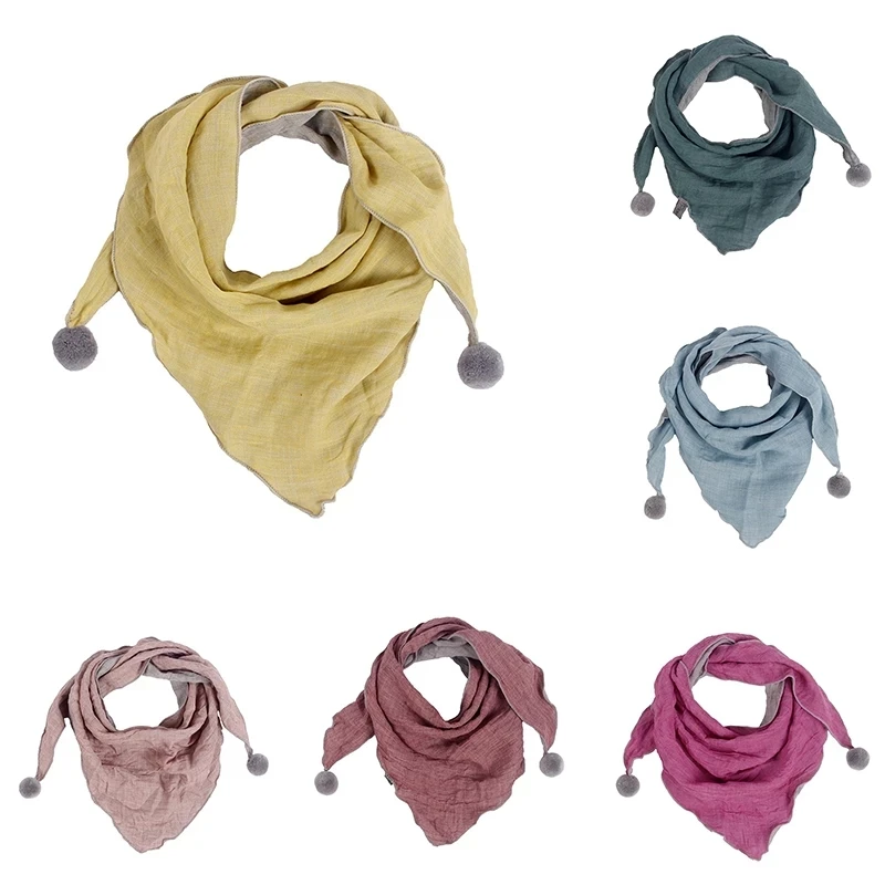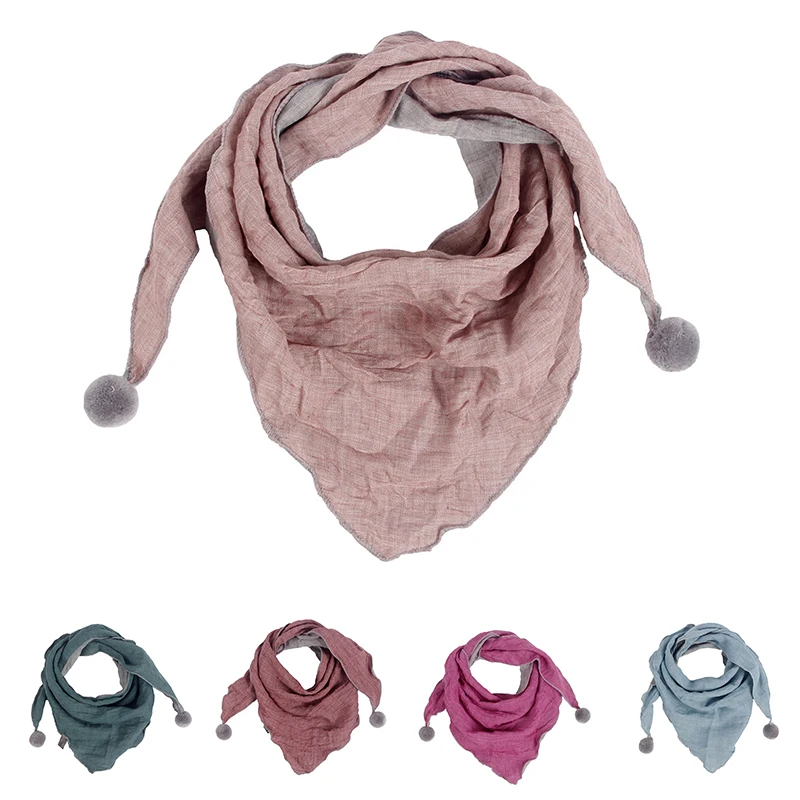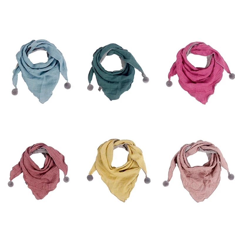 Новый треугольный шарф для мальчиков и девочек, мягкие красочные хлопковые шарфы, детский уличный зимний теплый шарф с плюшевым шариком, шаль в подарок