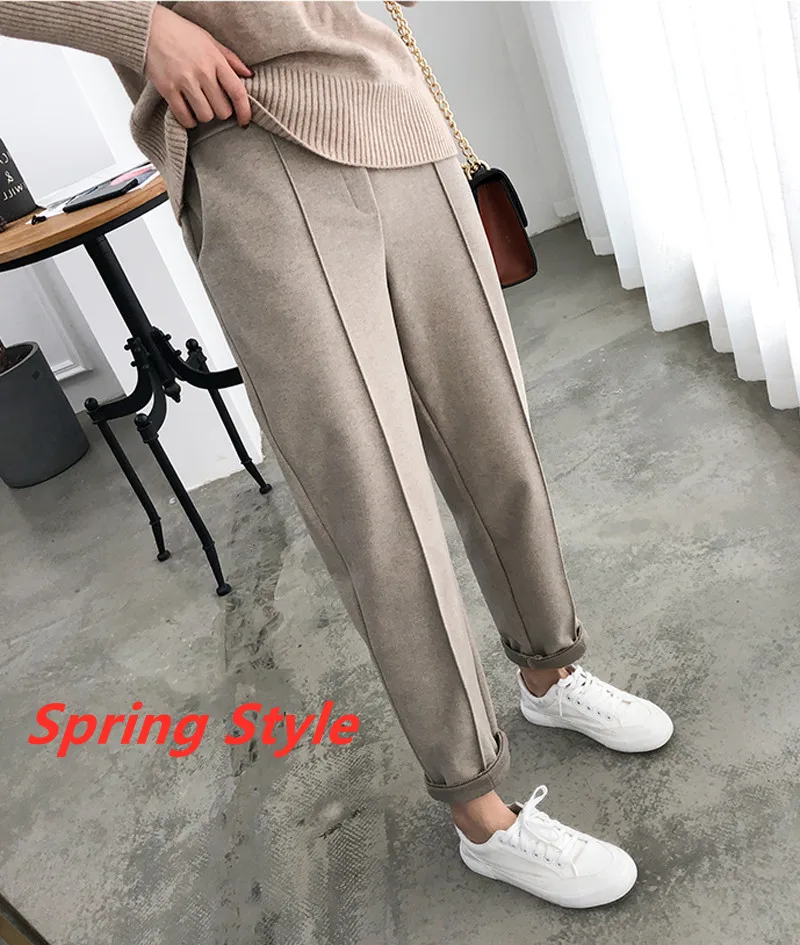 Зимние плотные женские брюки-карандаш, шерстяные брюки, женские весенние свободные брюки с высокой талией, капри из мягкой хорошей ткани