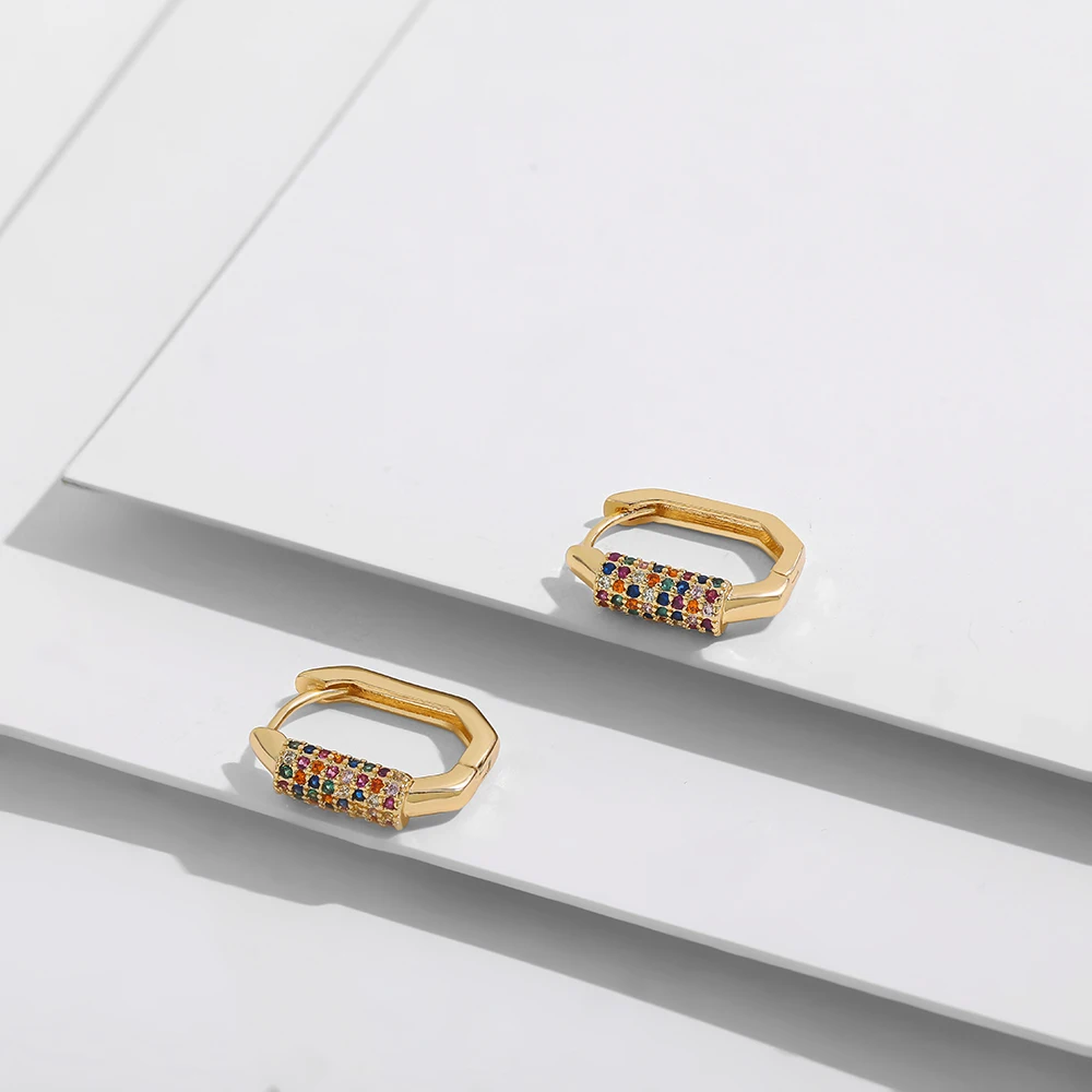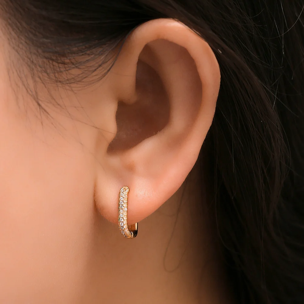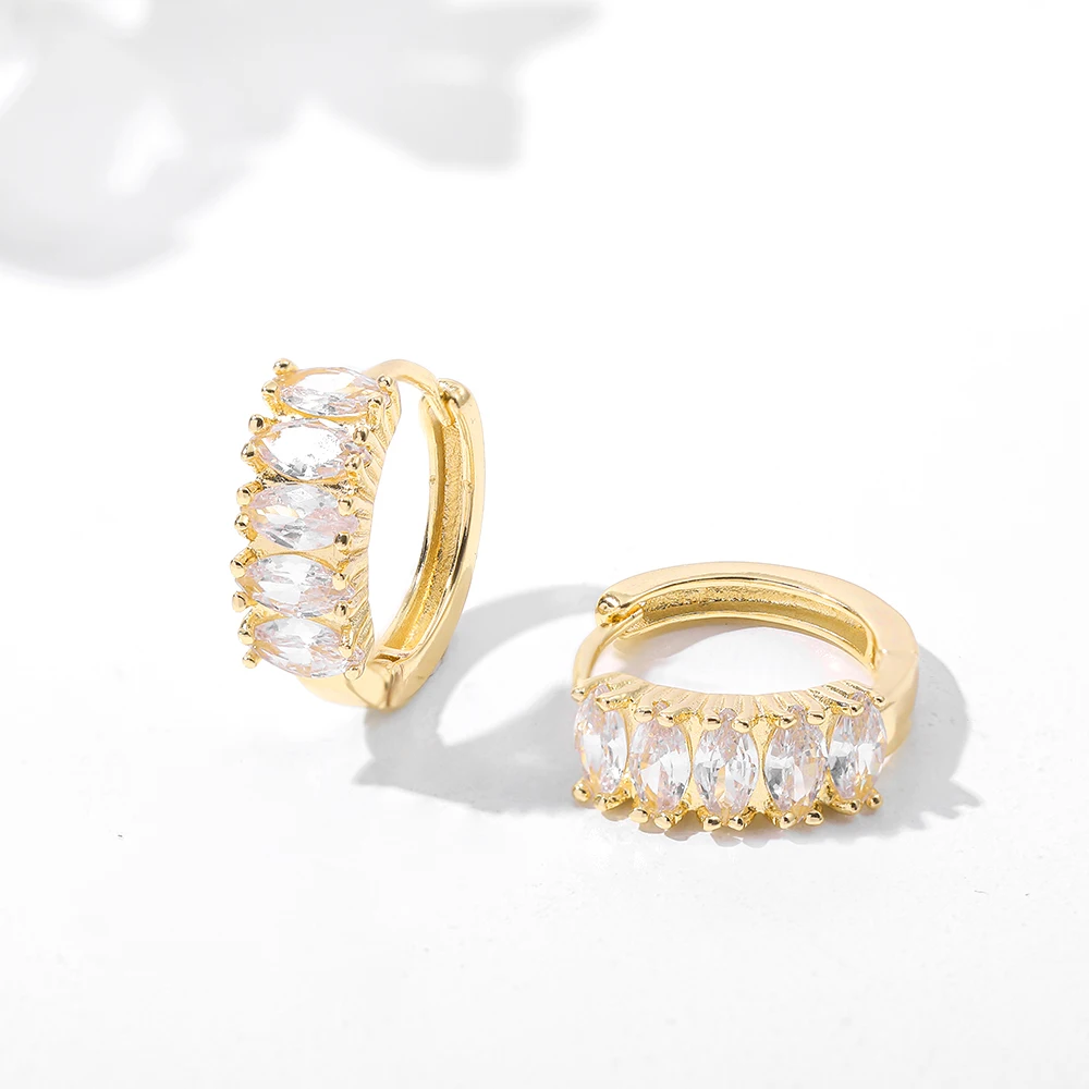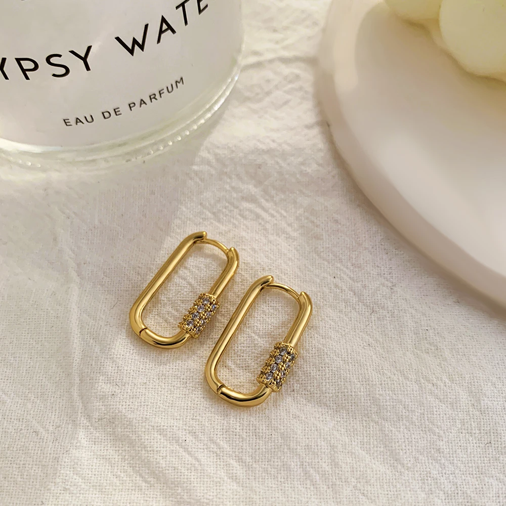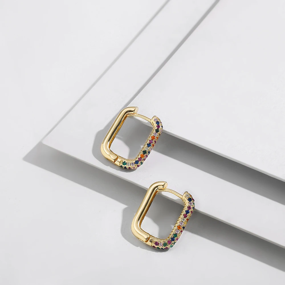 Модные геометрические квадратные белые серьги-кольца с фианитом, золотые металлические маленькие серьги-клипсы с кристаллами, ювелирные изделия для женщин