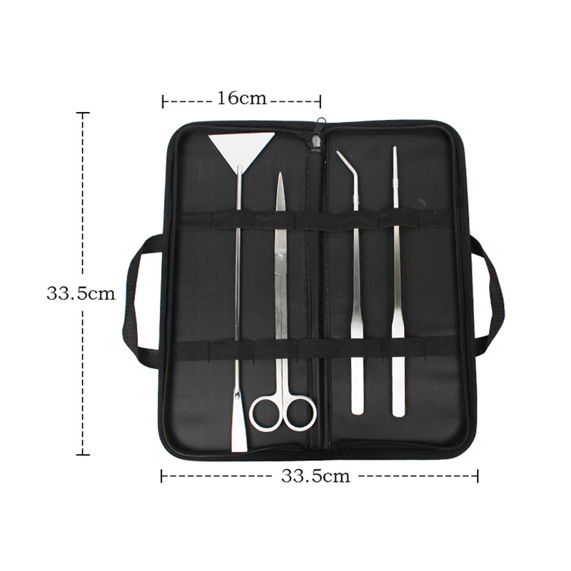 5 шт. в комплекте с сумкой(25 см4,0 мм толщина качество ADAПрямые/изогнутые ножницы и 27 см прямые/изогнутые пинцеты и 32 см шпатель)/Вес: 0,445 г
