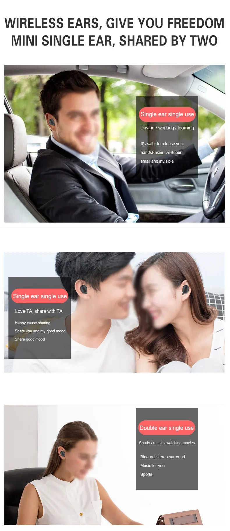 Настоящая Беспроводная bluetooth-гарнитура, разделение левого и правого каналов, автоматическое подключение, оба уха можно использовать отдельно.