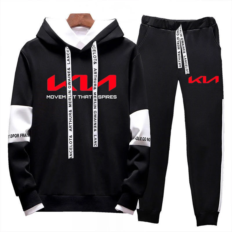 Новинка 2021, мужской спортивный костюм с принтом логотипа автомобиля Kia, свитшот с капюшоном и брюки, пуловер, толстовка, спортивная одежда, Классический Повседневный костюм