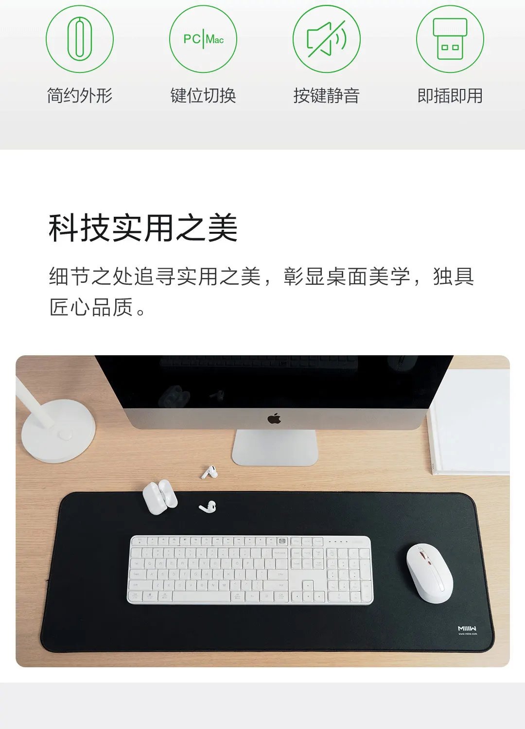 Оригинальная беспроводная клавиатура Miiiw, 104 клавиш, 2,4 ГГц, беспроводная Двойная модель, портативная клавиатура, мышь, набор для Windows 10, Mac, для Xiaomi