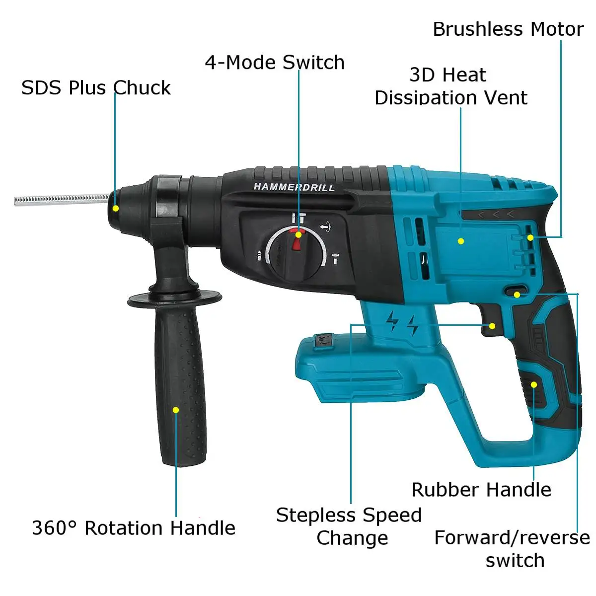 Бесщеточная электрическая дрель-перфоратор, перезаряжаемая многофункциональная электрическая Ударная дрель для разрушения аккумулятора Makita 18 в