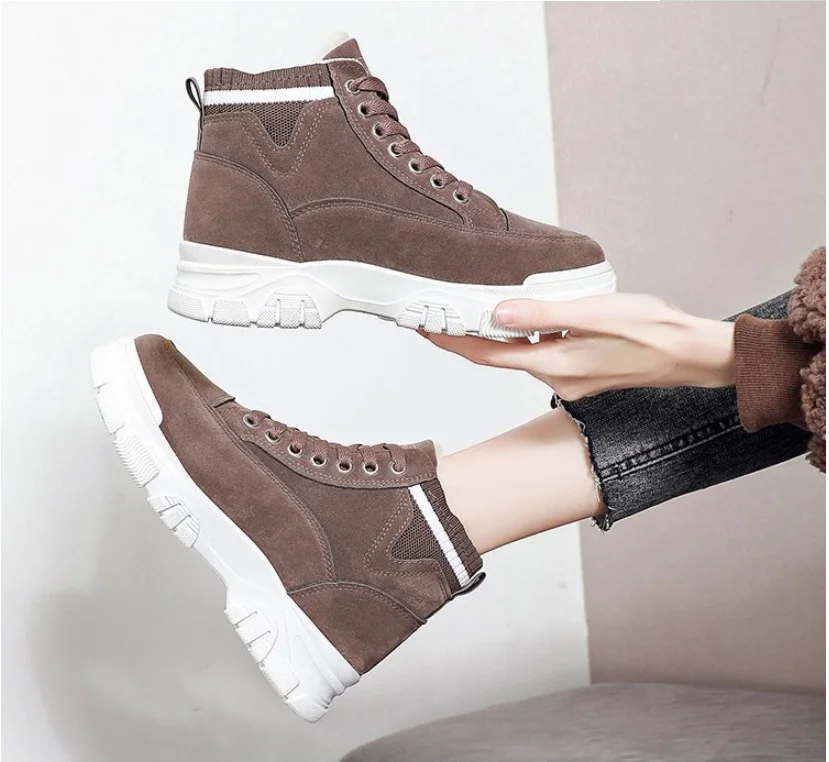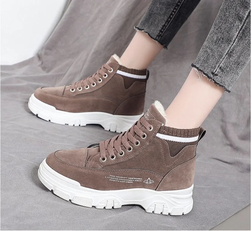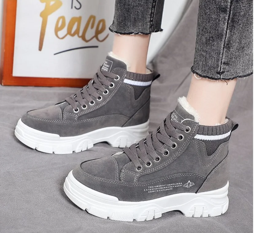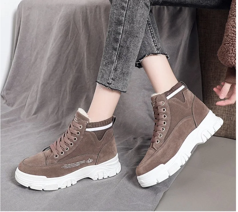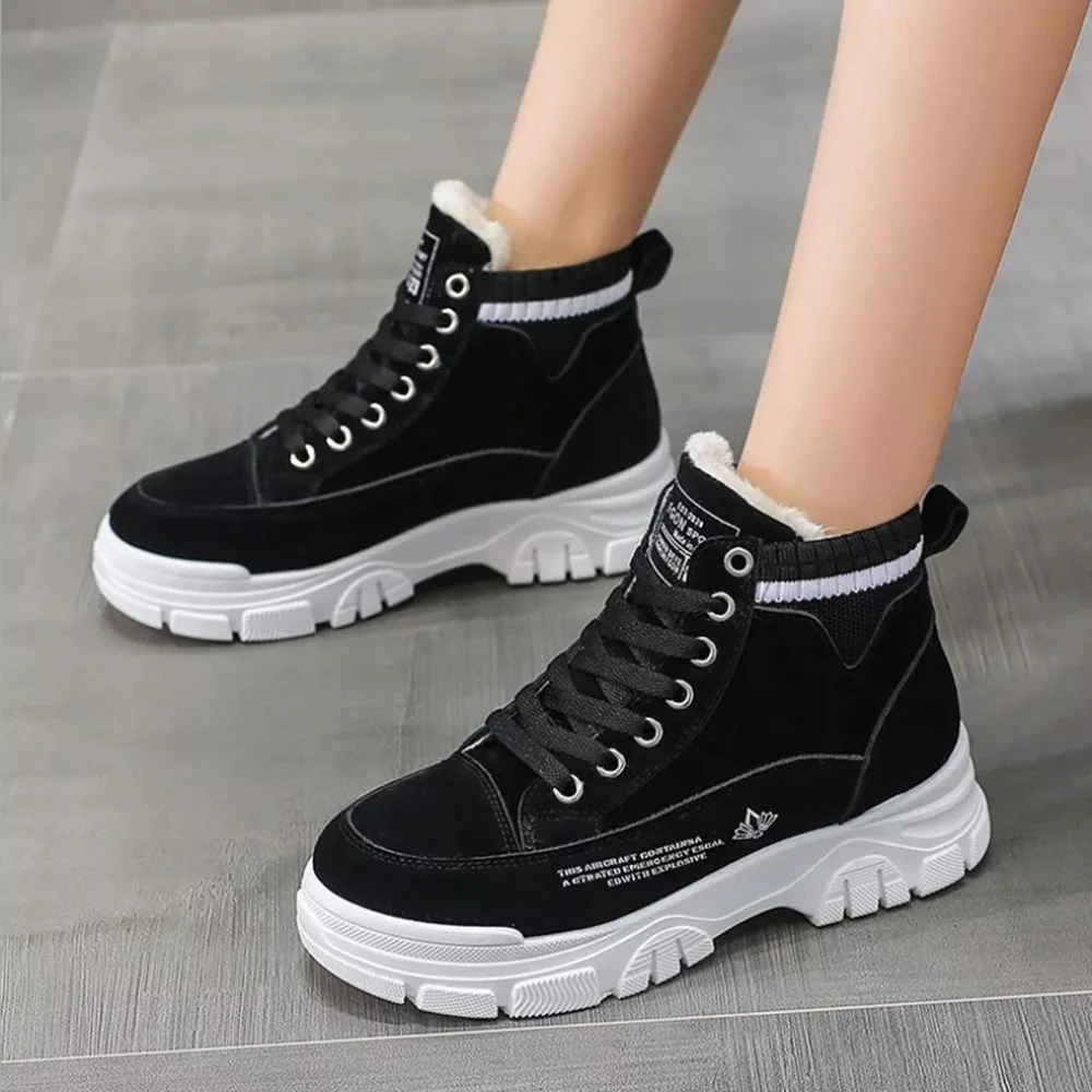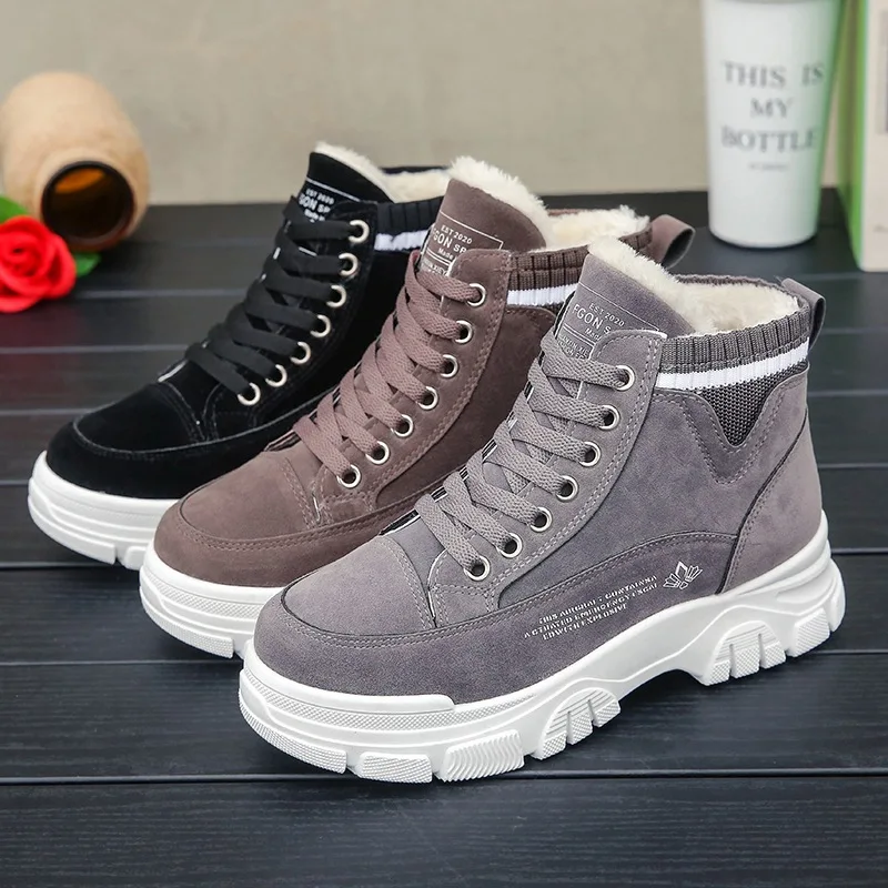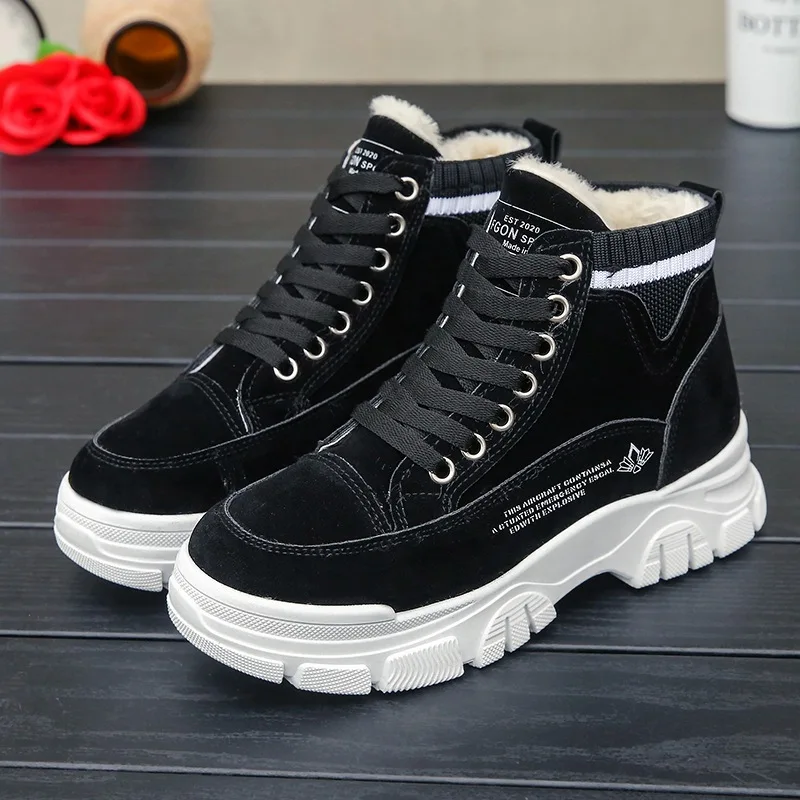 Зимние женские ботинки для снежной погоды, женские бархатные теплые хлопковые ботинки на толстой подошве, новая Студенческая обувь с высоким верхом, 2022