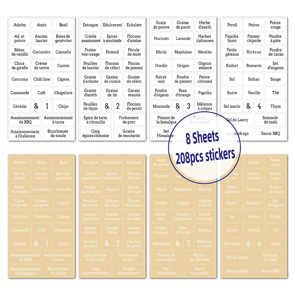 Прозрачные водонепроницаемые банки для хранения, дневные банки с французскими специями, стикеры для приправ, ярлыки для кладовой