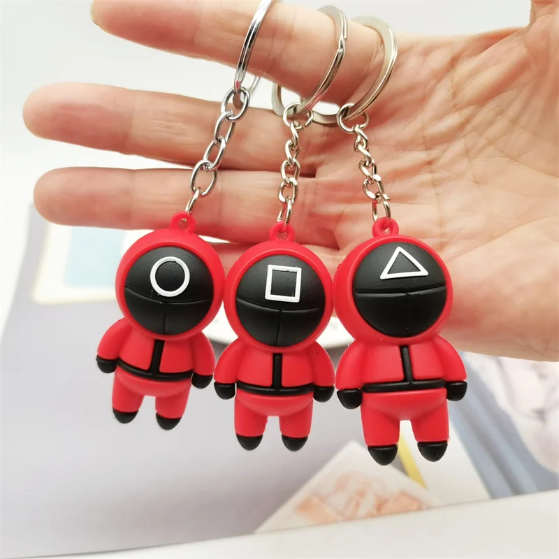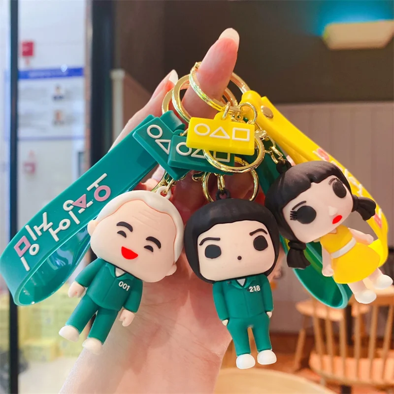 Популярные корейские брелки для ключей в виде фигурок игры кальмар, Красная Зеленая 3D мультяшная кукла, брелки для косплея для детей, цепочка для экшн-фигурок, игрушки, подарки