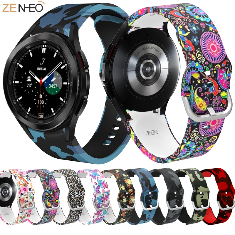 Силиконовый ремешок с принтом для Samsung Galaxy Watch 4, классичес...