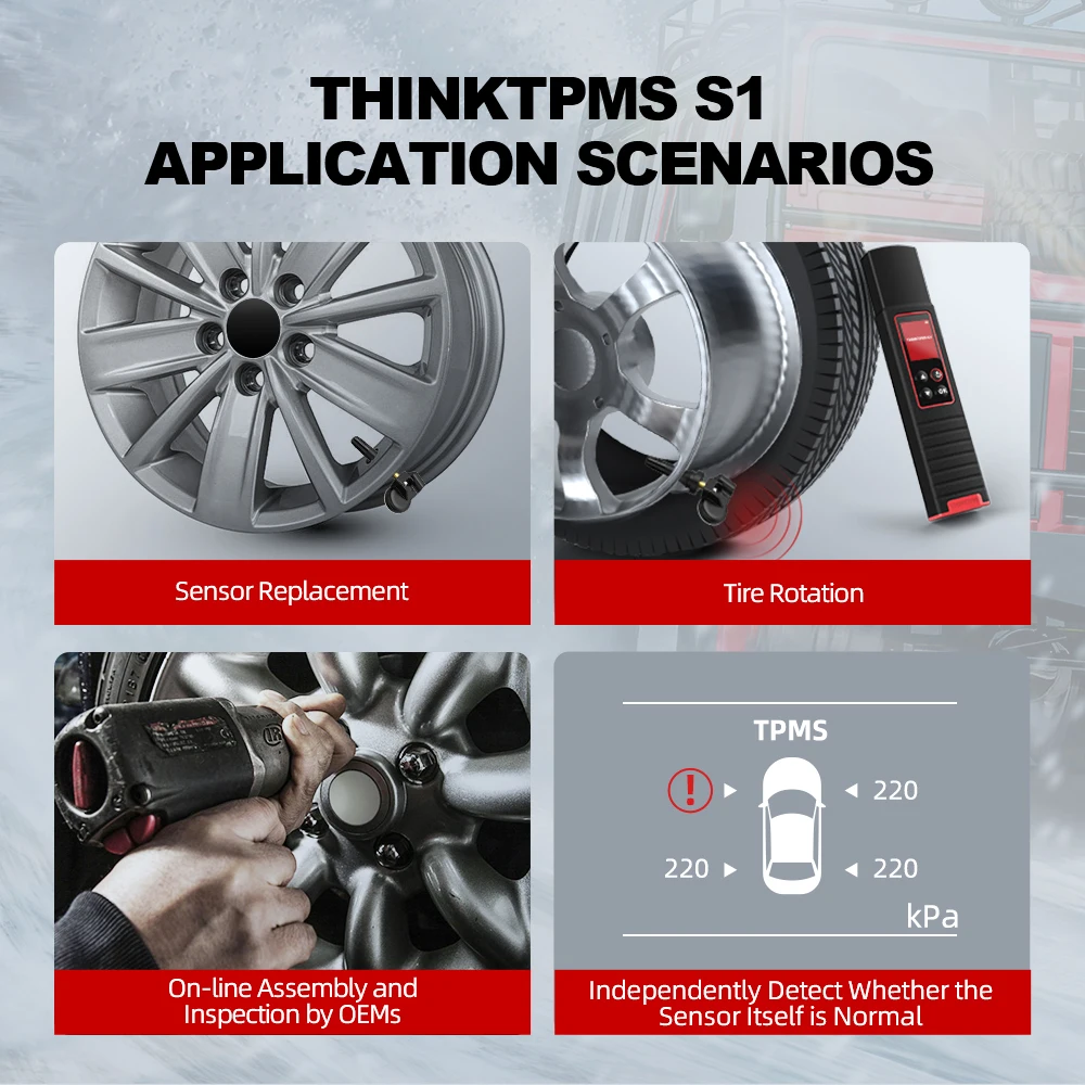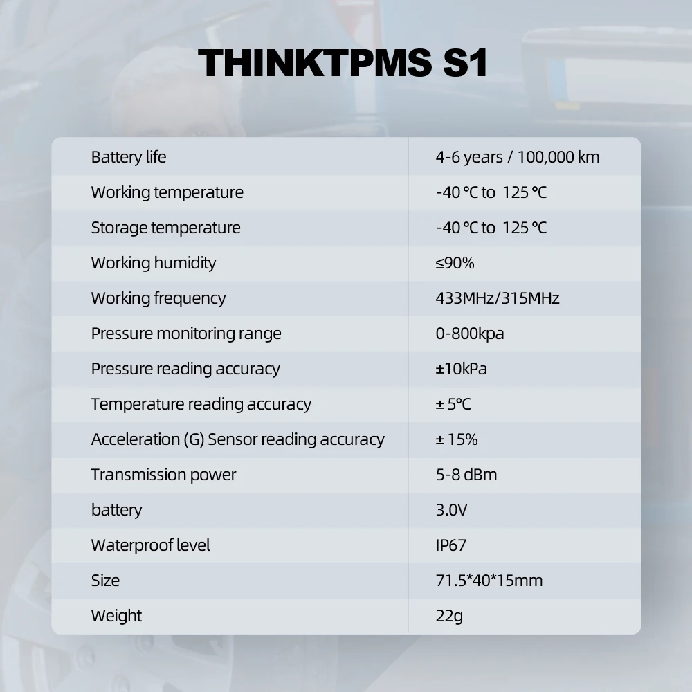 THINKTPMS S1 может работать с THINKTPMS G1, покрывает 98% моделей автомобилей, может заменить оригинальный датчик давления в шинах