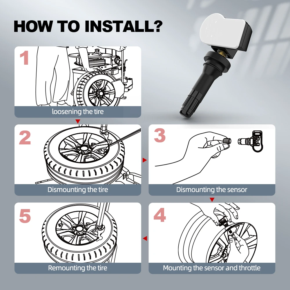 1. Снимите крышку шины2. Установка Датчика шины3. Накачать шины4. Наденьте calve cap5. Балансировка теста6. Регулировка баланса