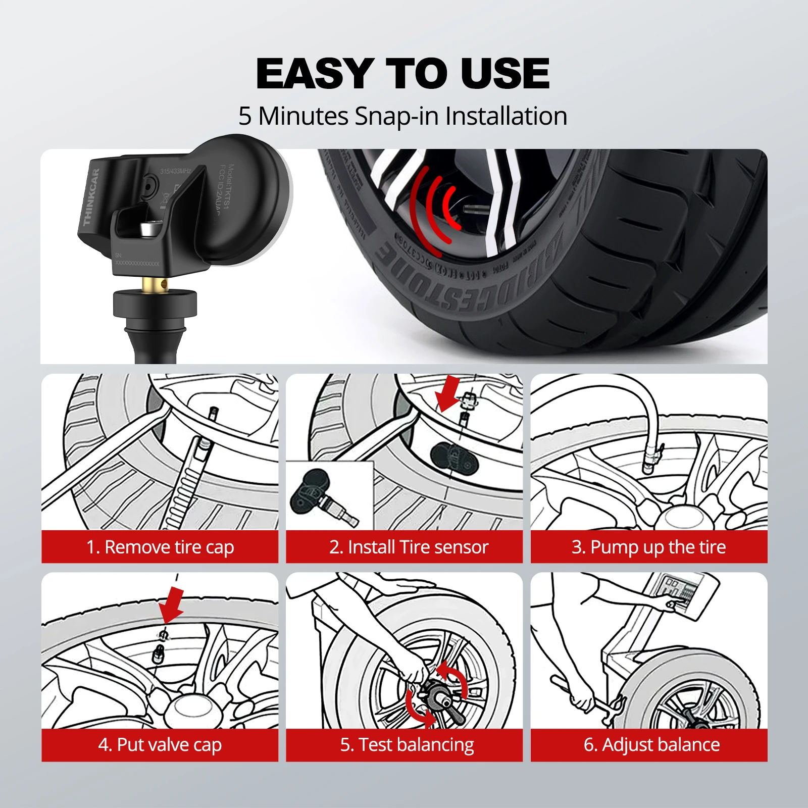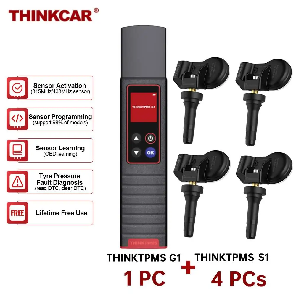 THINKCAR Thinktpms G1 может активировать все датчики давления в шинах 315 МГц/433 МГц, а также считывать, копировать, записывать идентификаторы датчиков и считывать данные о давлении в шинах (давление, температура, состояние батареи)