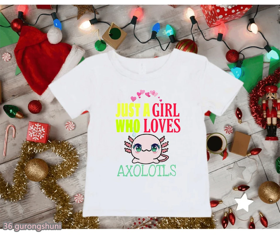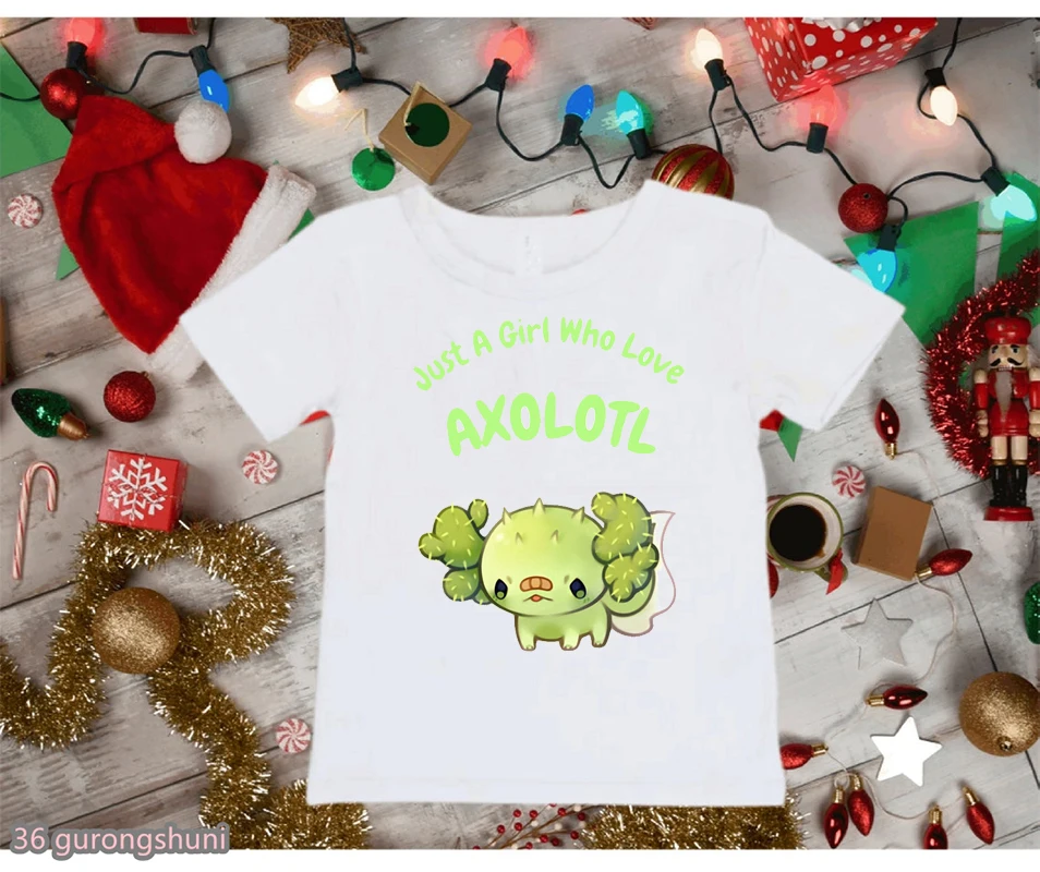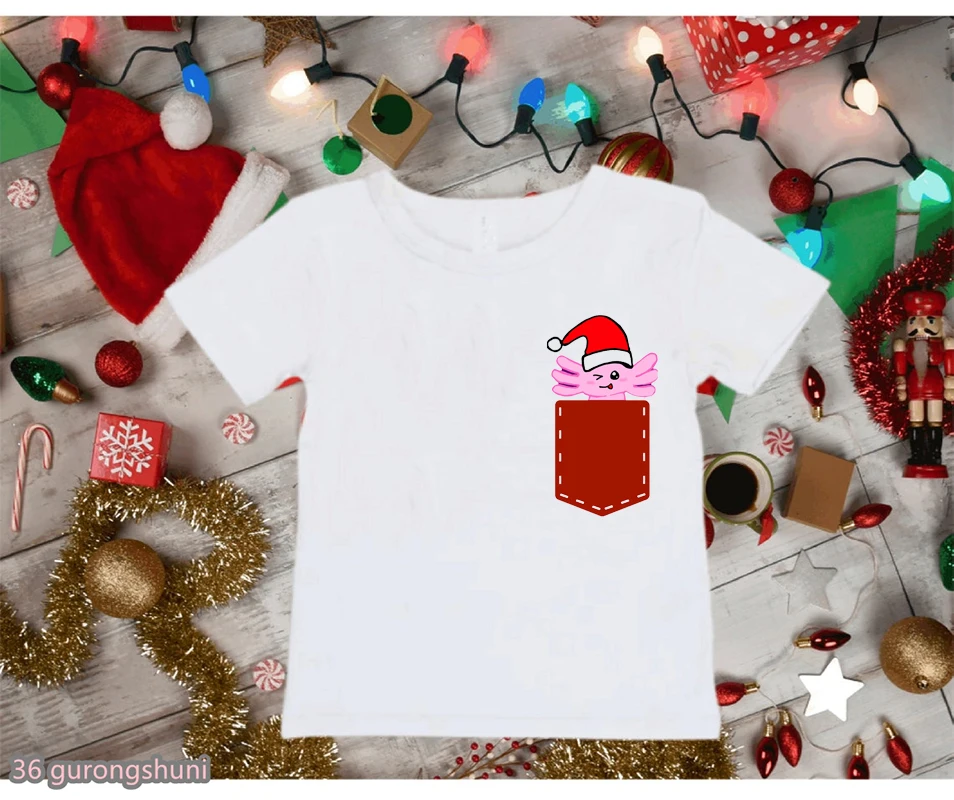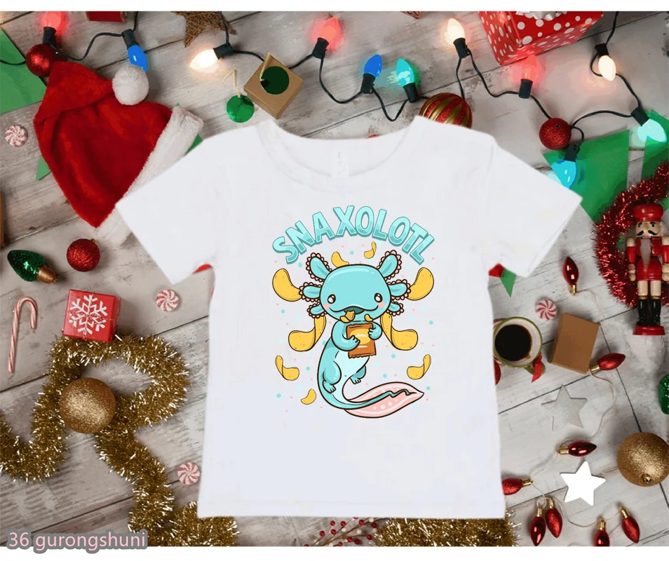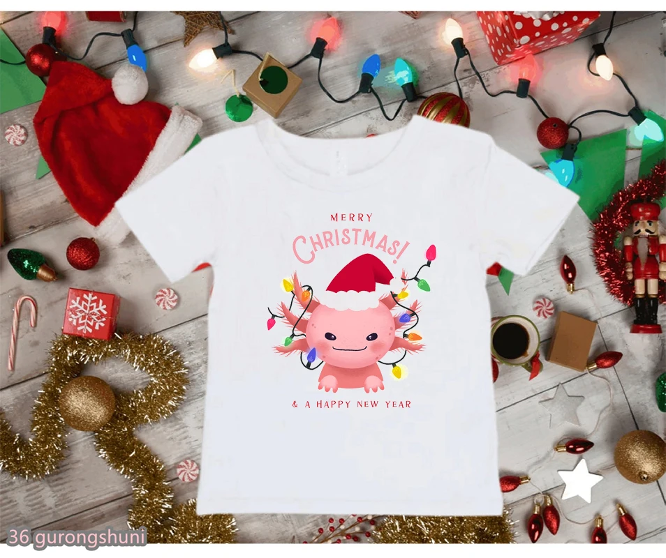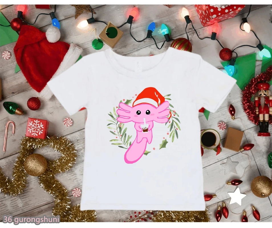 Рождественская футболка с графическим принтом Axolotl, топы для девочек и мальчиков, с Новым годом, детская одежда в стиле Харадзюку, кавайная детская одежда
