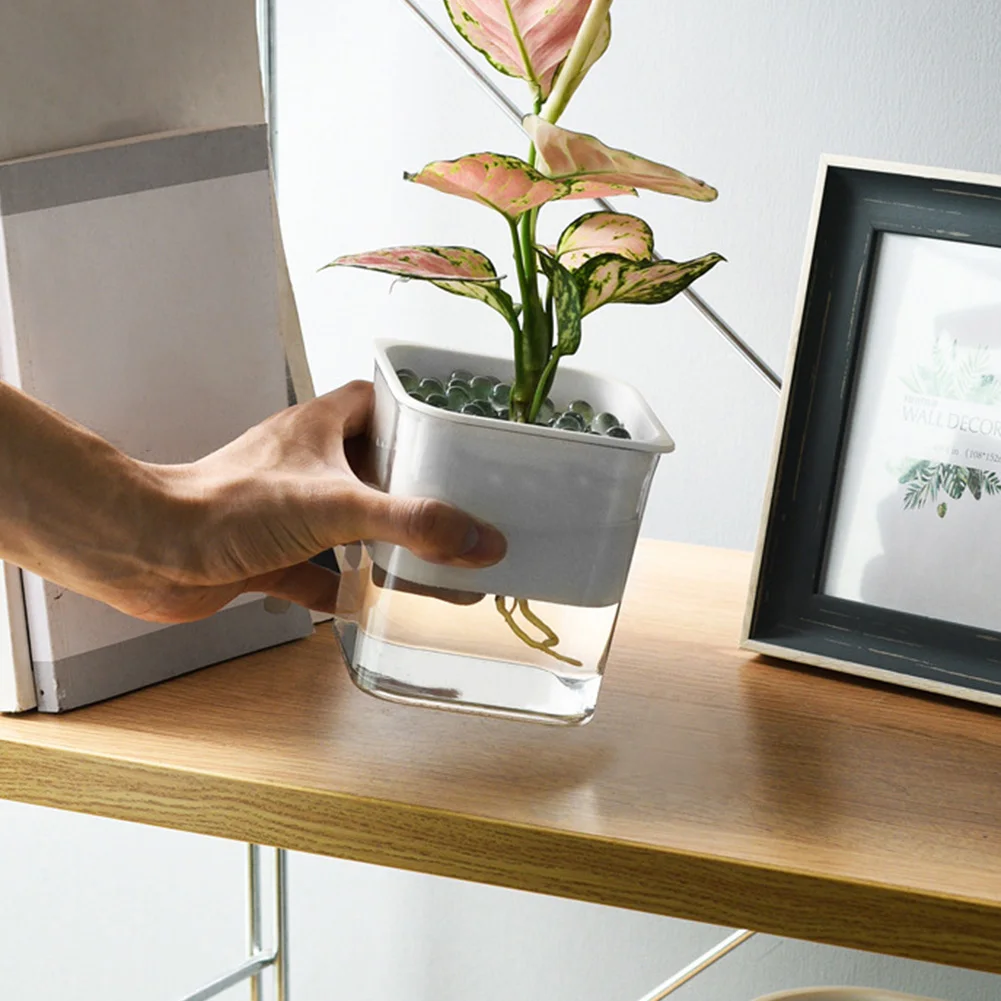 Цветочный горшок с системой полива Пластик ясный с самостоятельным ...