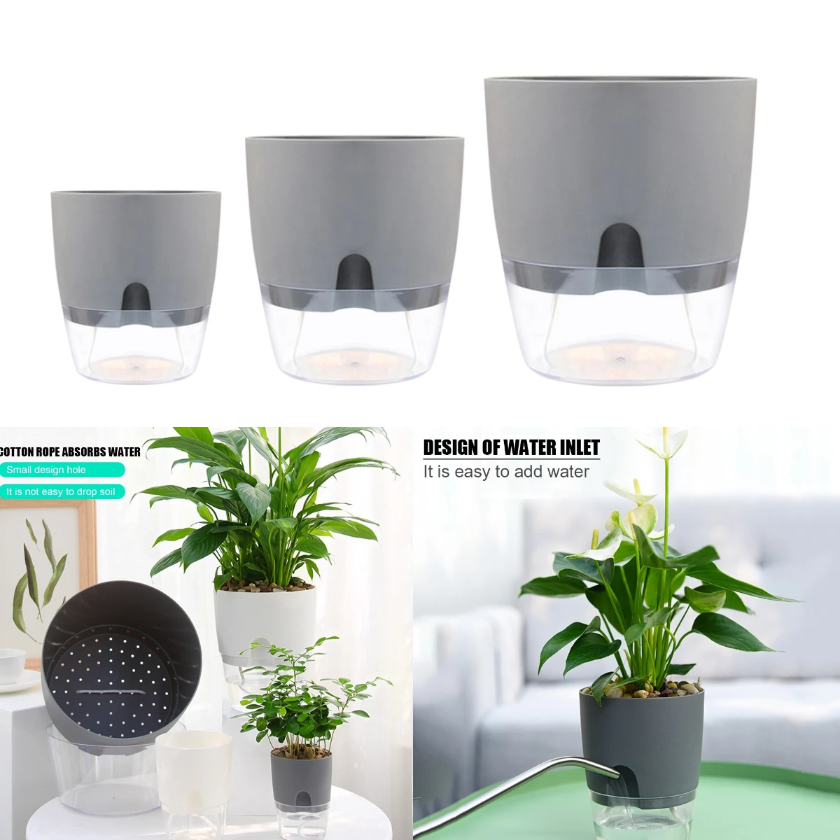 2 Слои цветочный горшок с системой полива с самостоятельным поливом...