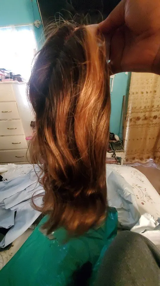 Волосы выглядят отлично, на ощупь отлично. Минимальное выпадение, когда я пробежу руками через волосы, но я еще не помыл его. Я рад видеть, как это занимает отбеливатель. Красивая текстура и очень мягкая.