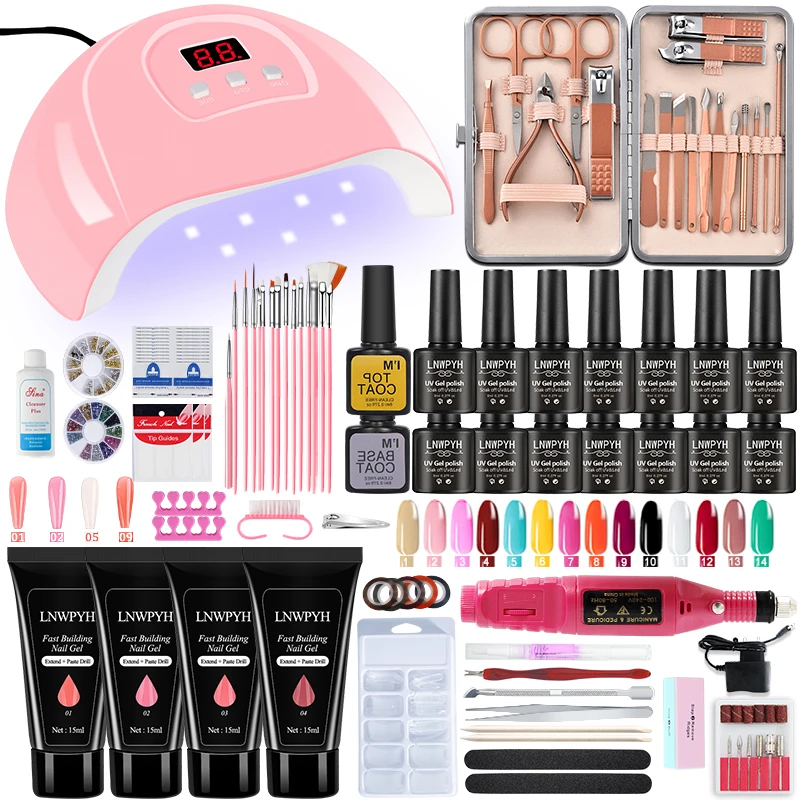 Набор полигелей для ногтей, светодиодсветодиодный лампа, полный набор для маникюра, набор для быстрого наращивания ногтей, набор полигелей для наращивания ногтей, 18 шт. для маникюра, набор инструментов для педикюра