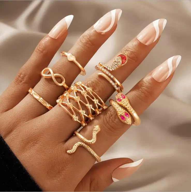 Набор золотых колец в виде змеи для девочек-подростков, Женские Ювелирные наборы, кольца в богемном стиле, 2021