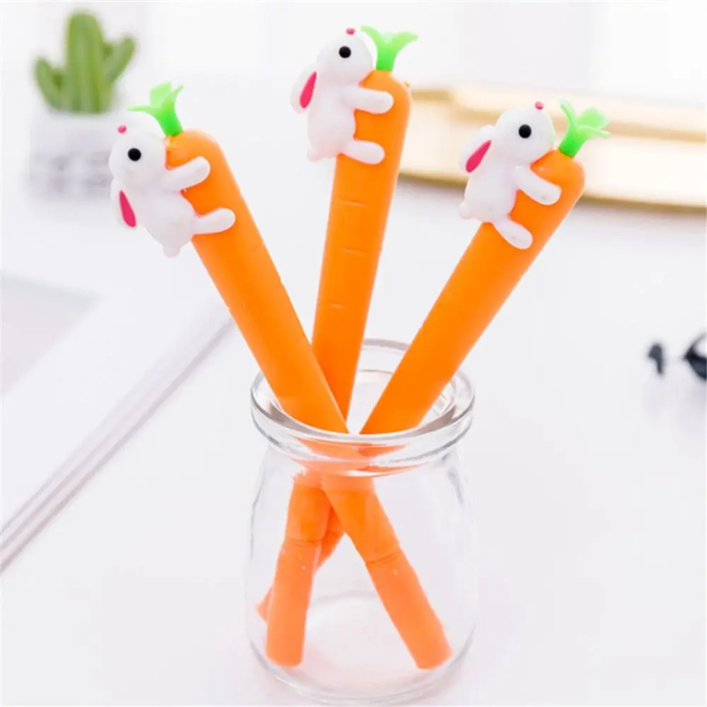 Милые канцелярские принадлежности, креативная нейтральная черная ручка с мультяшным знаком, гелевые ручки с морковкой, кроликом