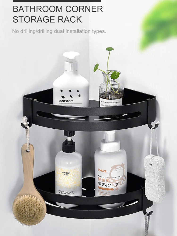 Полка для ванной комнаты, душевая стойка для хранения, черные углов...