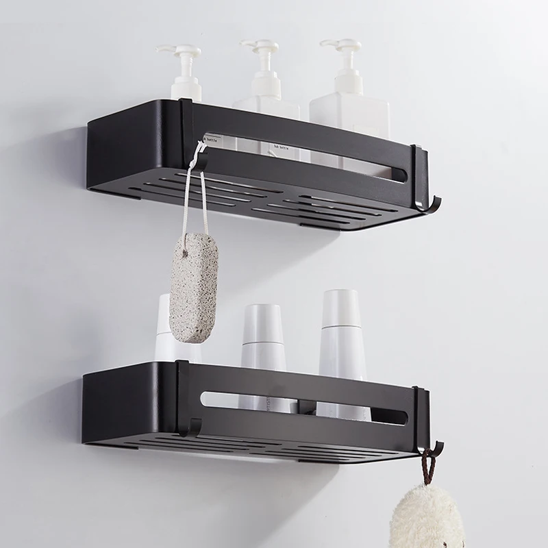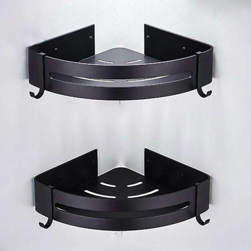 Полка черная для ванной комнаты, стеллаж для хранения, угловая полка для душа, настенная алюминиевая полка для туалета, шампуня, без сверления, настенная полка