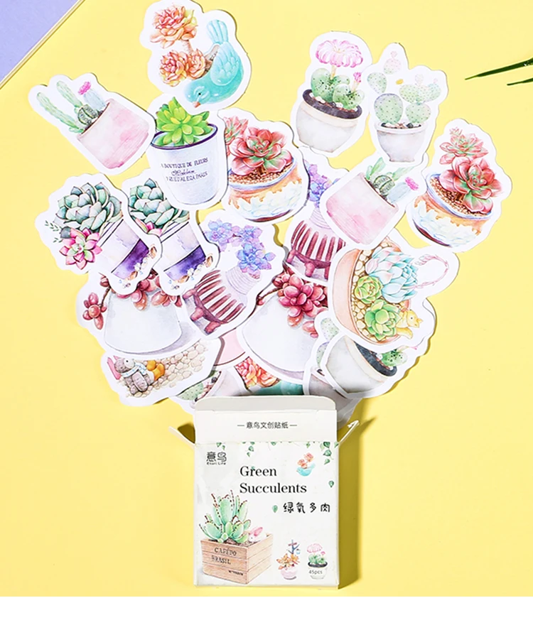 Милые наклейки в виде суккулентных растений, альбом для скрапбукинга, журнал, дневник, декоративная наклейка, школьные канцелярские принадлежности, 45 шт.коркор.