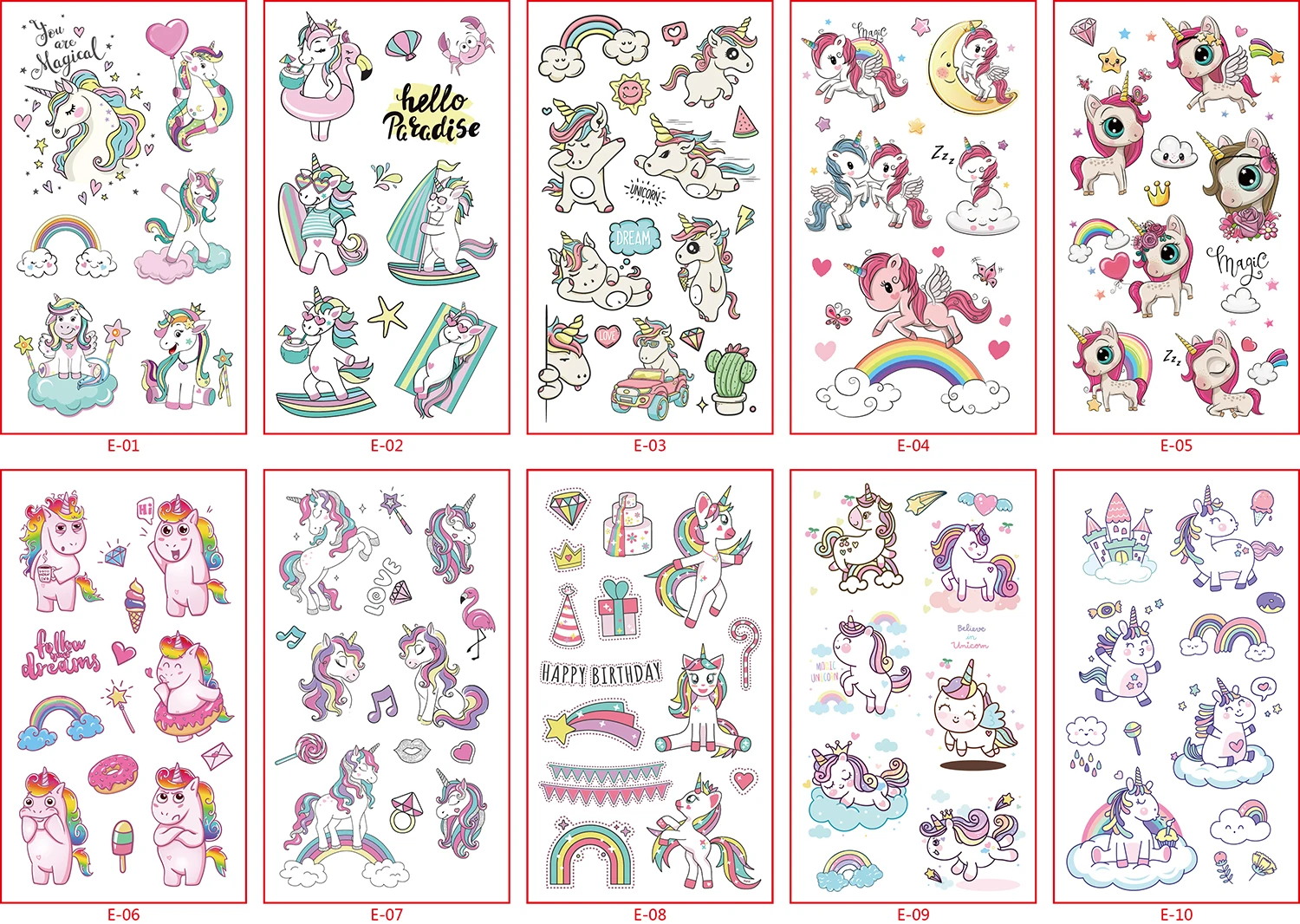 10 шт.компл. Детские временные тату-наклейки с мультяшными животными, русалочкой, единорогом, наклейки для детского душа, тату для тела, русалки, украшения для вечеринки