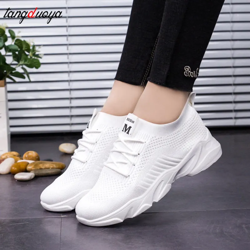 Кроссовки-носки женские, дышащие сетчатые, белые, повседневная обувь, 2021