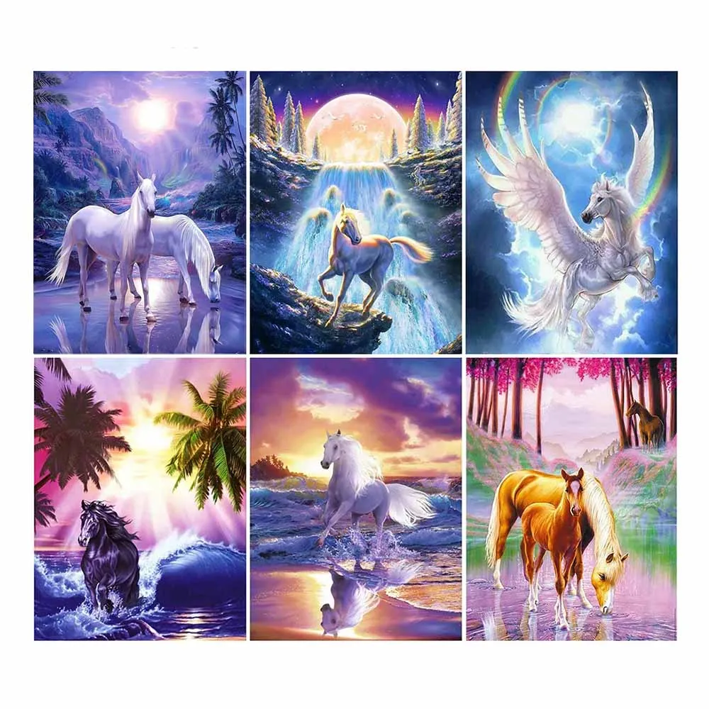 Бриллиантовая живопись AMY-5d Horse, набор для алмазной вышивки с квадратными стразами, животное, вышивка крестиком, Алмазная мозаика для детей, домашний декор