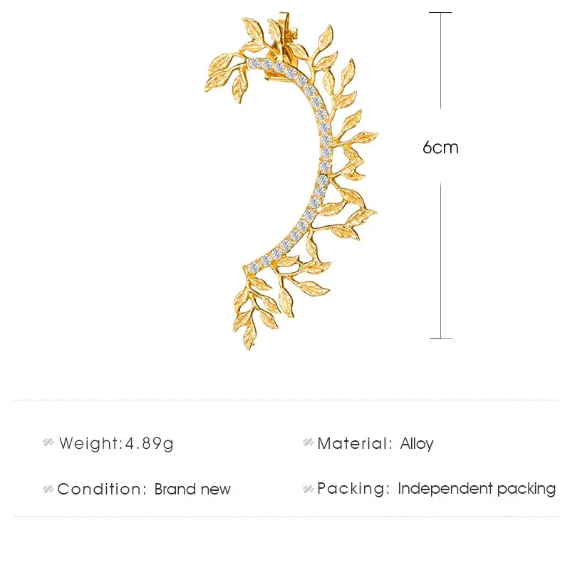 ZLALHAJA, 2 шт., клипса для левого уха, серьги-кольца с гвоздиками, форма листьев, манжеты, пирсинг, серьги для женщин, тренд 2022, модные ювелирные изделия