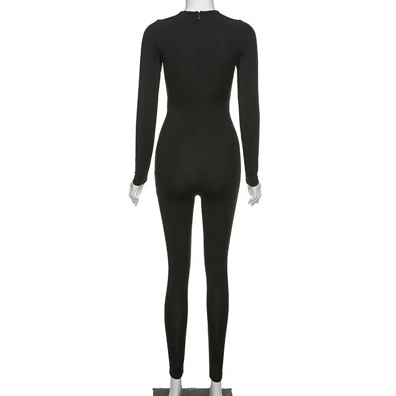 Черный комбинезон с длинным рукавом, женский наряд, модная спортивн...