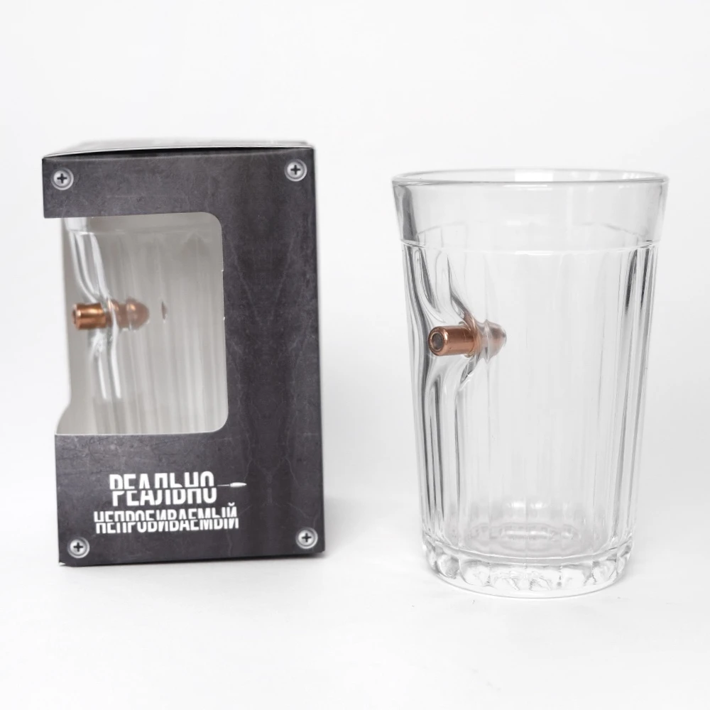 Стакан ГРАНЕНЫЙ 250мл Реально Непробиваемый с настоящей пулей 7,62 Подарок мужчине пуля в стакане бокал
