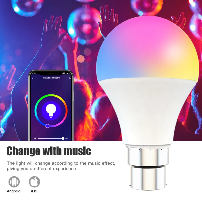 Лампочка регулисветильник яркости Tuya E27 B22 9 Вт RGBCW, умная лампочка с голосовым управлением, работает с Alexa и Google Home