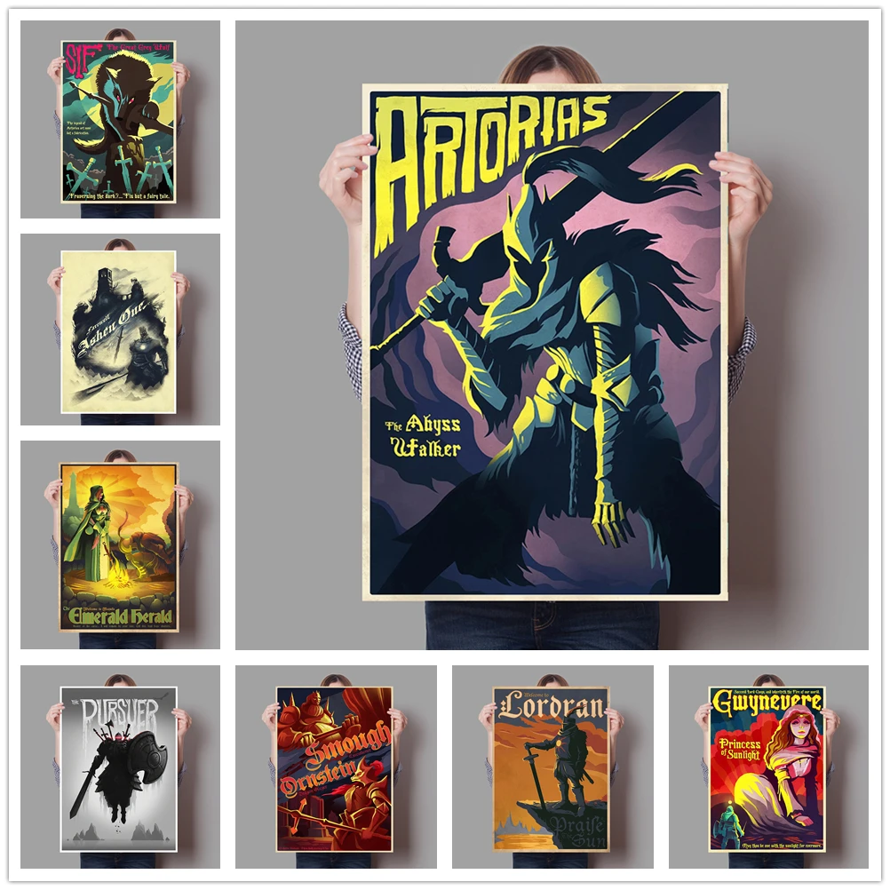 Изумрудный постер HERALD FIRELINK, изображение на холсте, рассекающий дракона, видеоигра, Настенная картина, домашний декор для гостиной