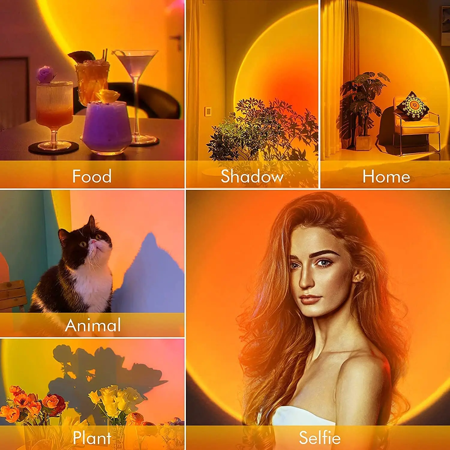 Лампа С закатом, USB Радужный проектор, атмосферный ночник, украшен...