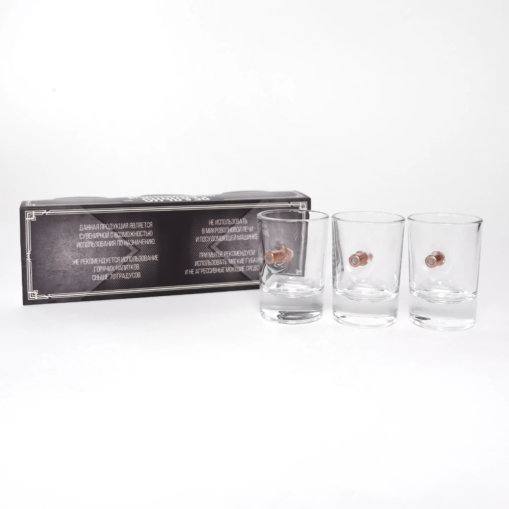 Набор РЮМОК 3х40мл СТОПКИ РЕАЛЬНО НЕПРОБИВАЕМЫЙ с настоящей пулей 7,62 Подарок мужчине пуля в стакане