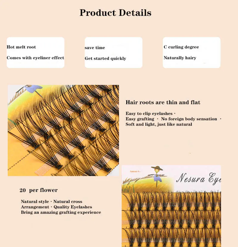 1 коробка 60 кластеров 2030D наращивание ресниц, Индивидуальные рес...