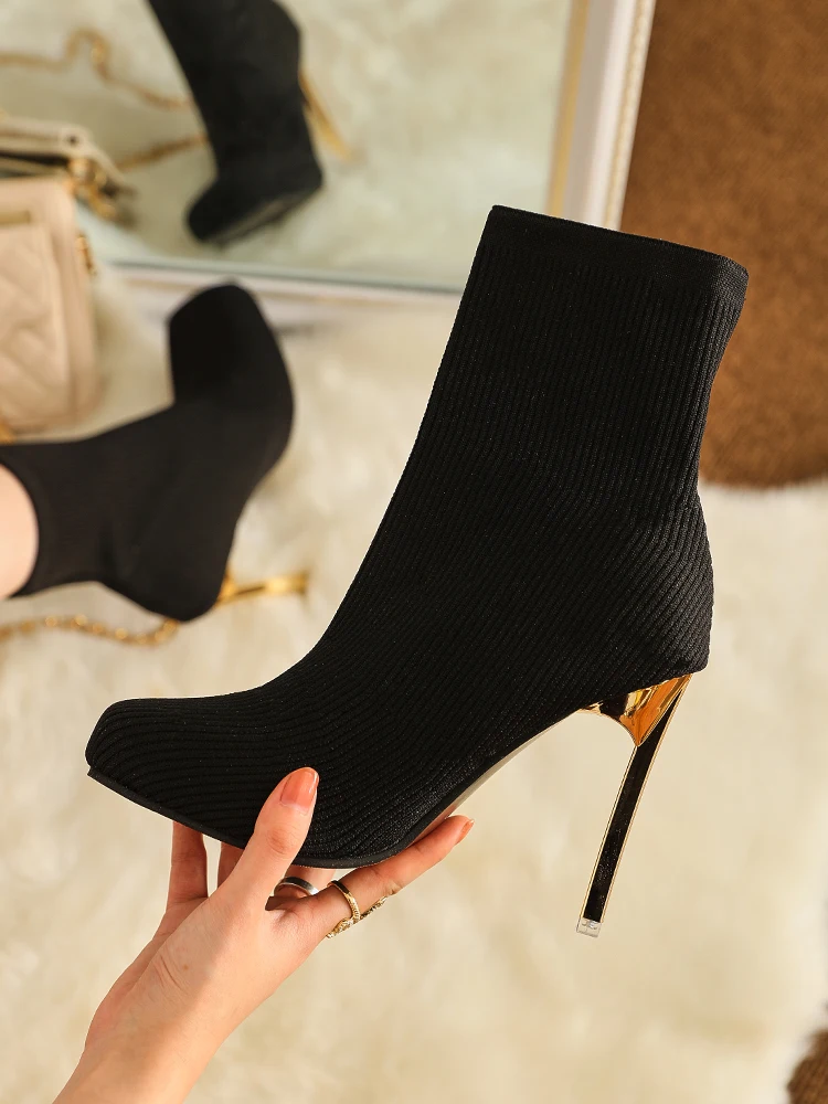 Женские высокие сапоги, вязаные, с квадратным носком, на тонком каблуке
