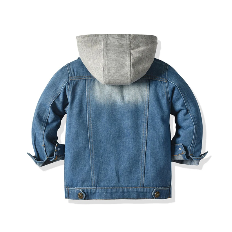 Джинсовая куртка с капюшоном для мальчиков, детская джинсовая одежд...