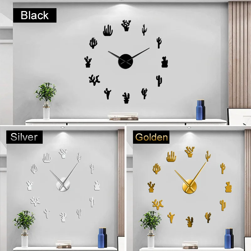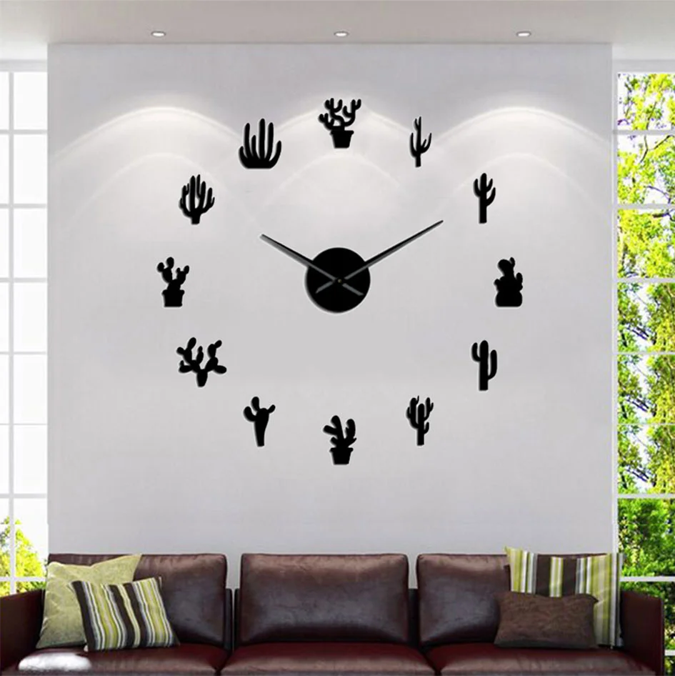 Новые домашние настенные часы 3D сделай сам, акриловые зеркальные наклейки для украшения дома, Подвесные часы С КАКТУСОМ, кварцевые часы, самоклеящиеся иглы
