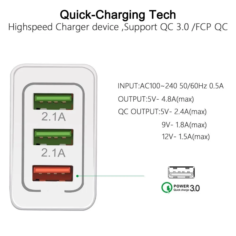 3 USB зарядное устройство Быстрая зарядка 3,0 быстрое USB настенное зарядное устройство портативный мобильный телефон зарядное устройство для Samsung S10 S9 Xiaomi iPhone EU US Plug