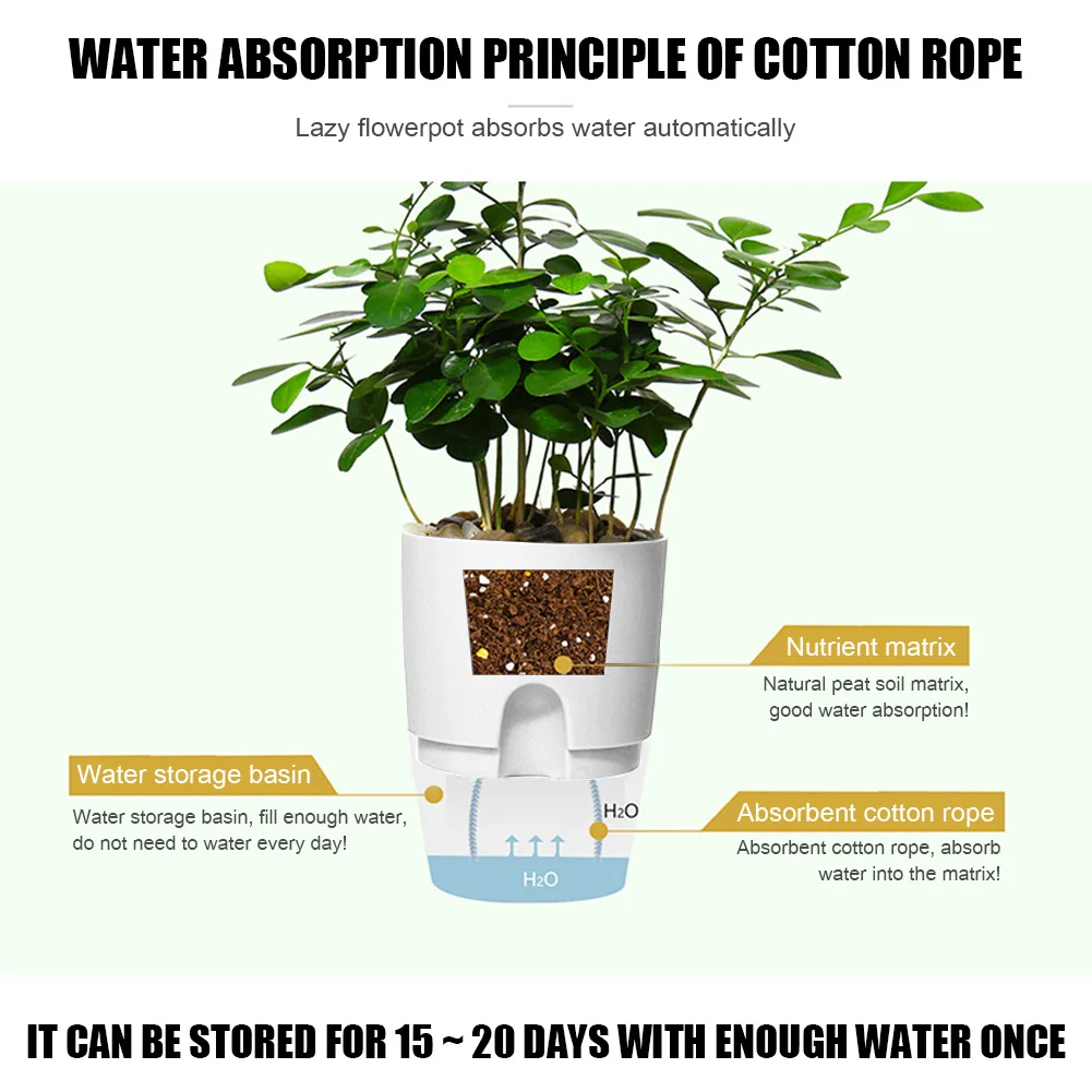 Характеристика:Материал ABS, внутренний таз с хлопковой веревкой для поглощения воды, съемный внутренний таз, более удобный для замены растений.Резервуар для хранения воды, достаточное количество воды не нужно поливать каждый день! Достаточное количество воды может храниться до 15 ~ 20 дней.Спецификация:Материал: АБС-пластикПримечание:Возможны отклонения в 1-3 мм вследствие измерений вручную.Из-за различных дисплеев и различного светильник, изображение может не показать фактический цвет товара. Спасибо за понимание.