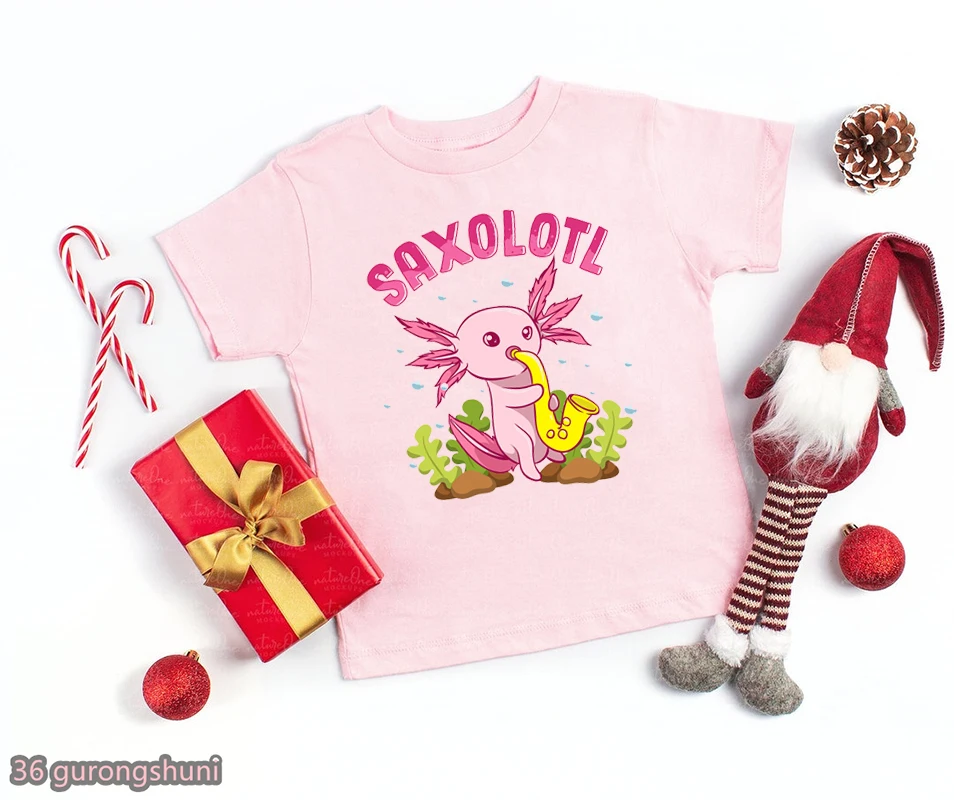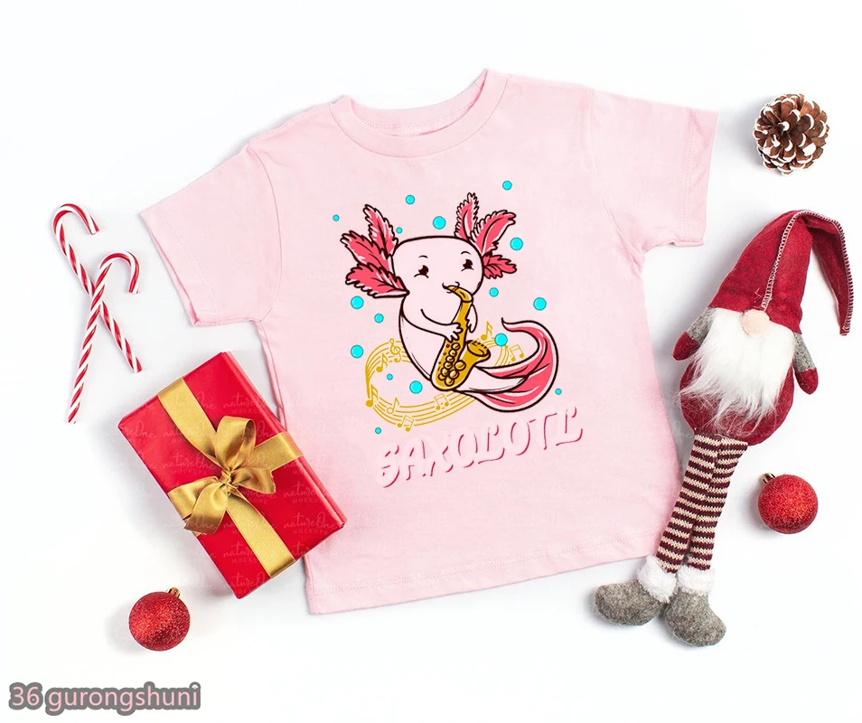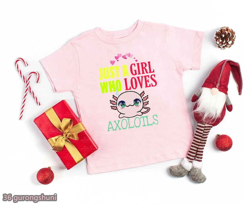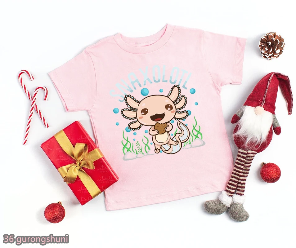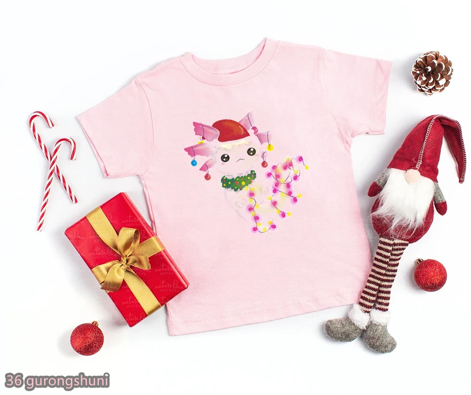 Рождественская футболка с графическим принтом Axolotl, топы для дев...