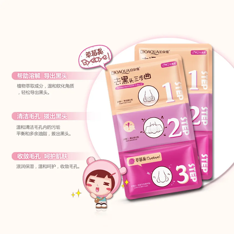 Маска BIOAQUA патч для носа для удаления черных точек, темных пятен, Отбеливающая увлажняющая питательная трехступенчатая для ухода за кожей носа