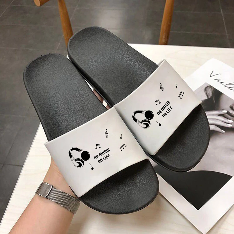 Сланцы женские пляжные, сандалии с музыкальным принтом, Нескользящи...